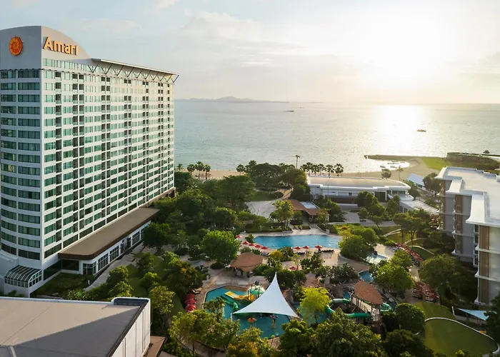 El hotel de 5 estrellas Amari Pattaya Hotel incluye 338 habitaciones y está ubicado a 2 km de la Pattaya Walking Street. Cuenta con una piscina exterior con vistas sobre la bahía de Pattaya.